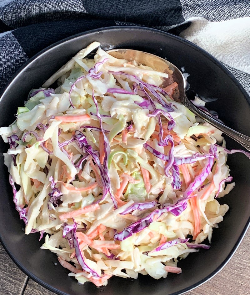 Cole Slaw – this is the best cole recipe you’ll find. Just 4 ingredients and 5 minutes = crunchy slaw in a homemade creamy tangy-sweet dressing.