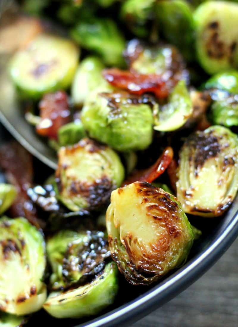 Maple Bacon Brussels Sprouts – roasted brussels with crispy bacon tossed in a maple syrup-Dijon mustard glaze.