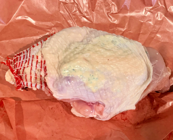 NOTE: Boneless breast usually comes with a net around it so the meat holds its shape. I like to slice the netting open on the skin side and leave the rest attached. You can leave the net on, but some of the skin may come off when you remove it after cooking.