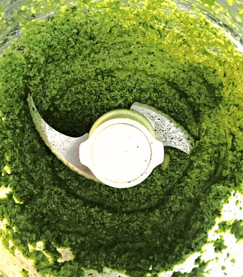 - Replace some of the basil with spinach. It adds nutrition and keeps pesto greener longer.
