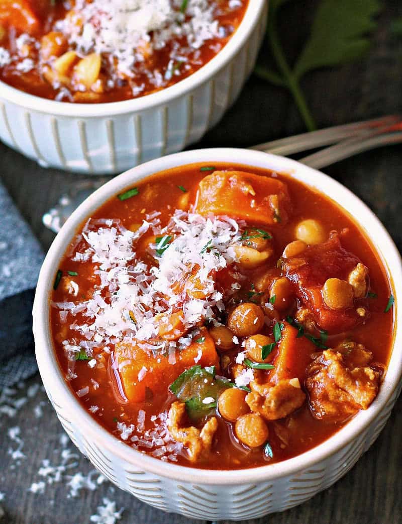 Turkey Lentil Soup – made with ground OR leftover turkey. Easy, hearty tasty healthy recipe with lentils and vegetables.