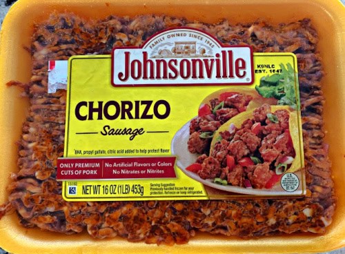 - chorizo sausage (spicy pork sausage available at the grocery store)