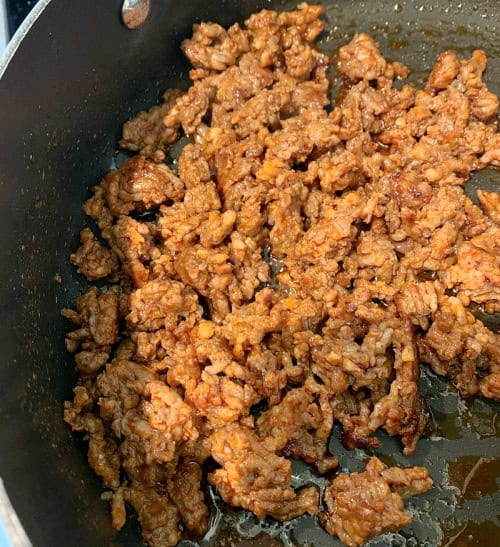 - Add chorizo to a large skillet over medium-medium high heat. Cook 4-5 minutes or until sausage is browned and no longer raw, breaking it up with a wooden spoon or spatula. Drain any excess grease.