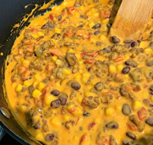 Cook on low heat 1-2 hours stirring occasionally until warmed through and the cheese is melty.