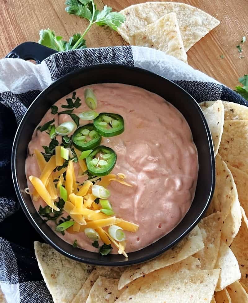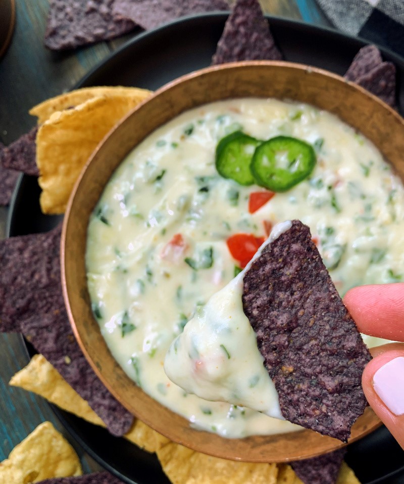 It whips up quickly and because it contains Velveeta, the silky, creaminess of the dip holds up as long as there’s dip in the bowl.