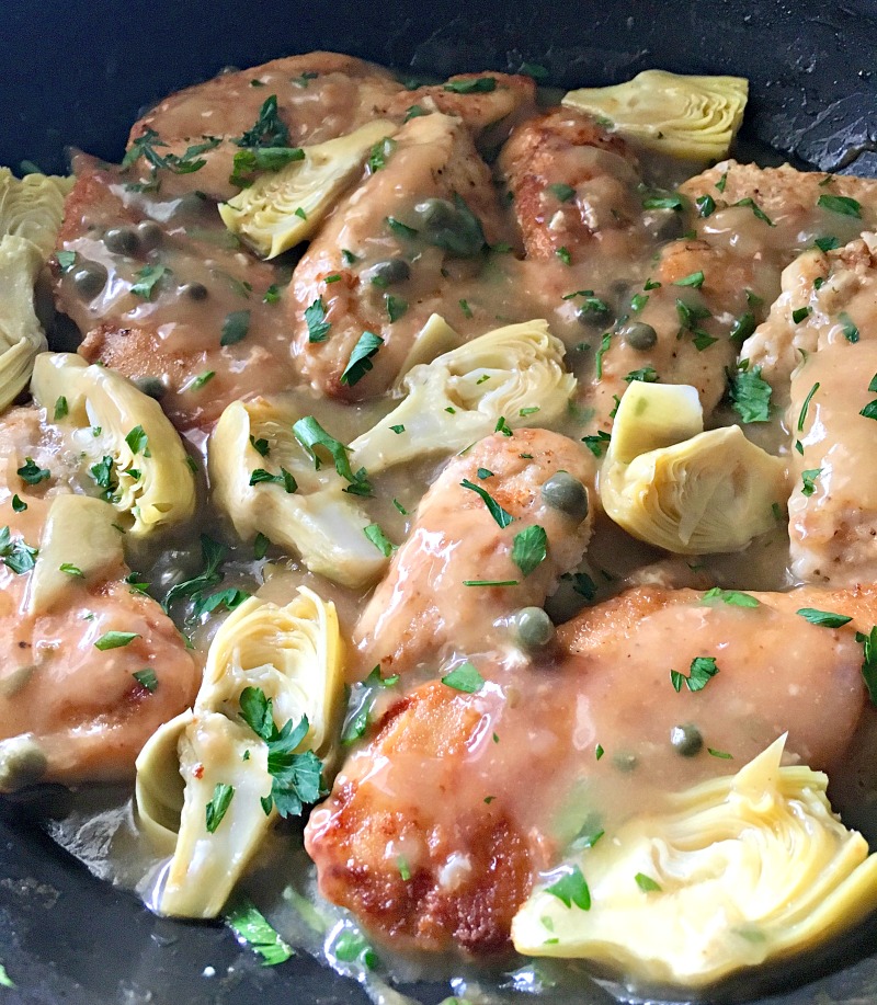 Chicken Piccata – 30 minutes – chicken cutlets in a light, lemony sauce with artichokes.