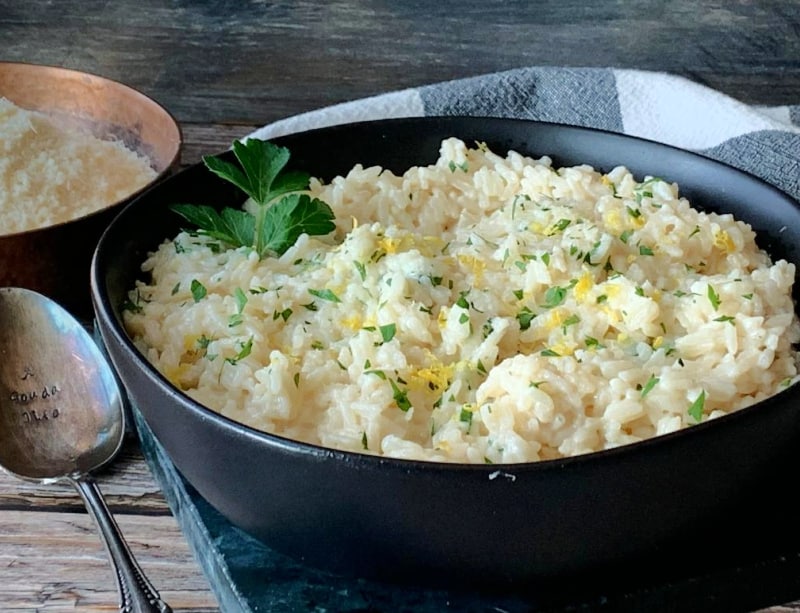 Creamy Parmesan Rice – easy rice recipe – creamy-cheesy like risotto with a light lemony flavor. It whips up in minutes for the perfect side dish with chicken, seafood or beef!