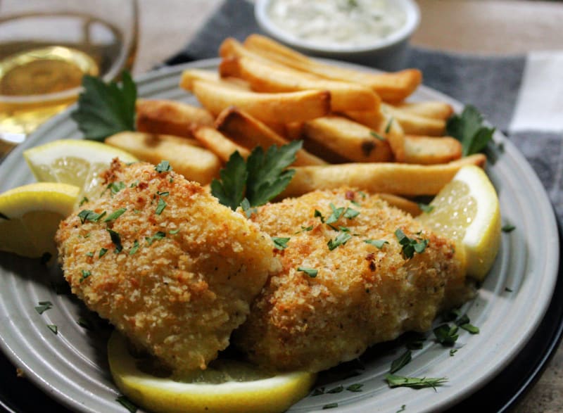 Crispy Baked Cod – fresh cod breaded with a seasoned panko-parmesan cheese blend baked until flaky, crispy and golden.