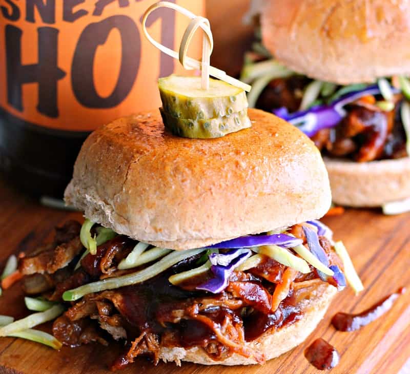 Beer Braised Pulled Pork: tender, juicy beer braised pulled pork with full on barbecue flavor. Slow simmered for the ultimate game day food.
