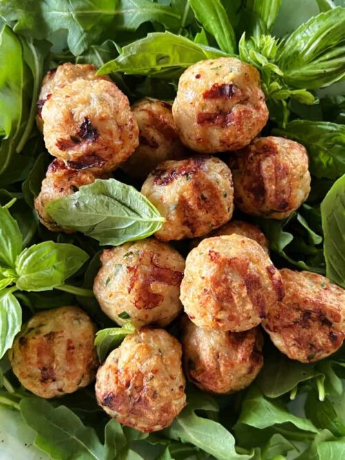 Chicken Meatballs – ground chicken and spinach – another good option for Grape Jelly Meatballs. Roll about 1″ in size for easy cocktail meatballs.