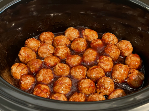 - When the meatballs having finished cooking, give them a good stir and switch the slow cooker to the warm (you can serve right from the slow cooker!).