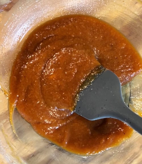- To a medium bowl add butter then microwave for a few seconds to melt completely. Add brown sugar, pumpkin puree and 1/2 teaspoon of pumpkin spice. Stir by hand until smooth.
