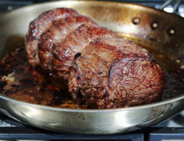 - I like to sear in an oven-safe skillet and transfer right to the oven to finish cooking. If you don’t have an oven safe skillet, transfer the meat to a baking sheet.