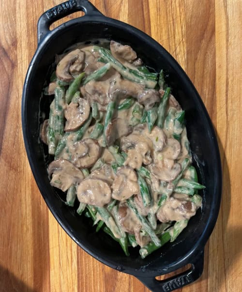 Skip the cans – this recipe uses fresh green beans and a simple homemade mushroo sauce for a more flavoful flavorful bite that’s not packed with sodium.