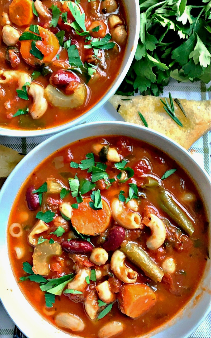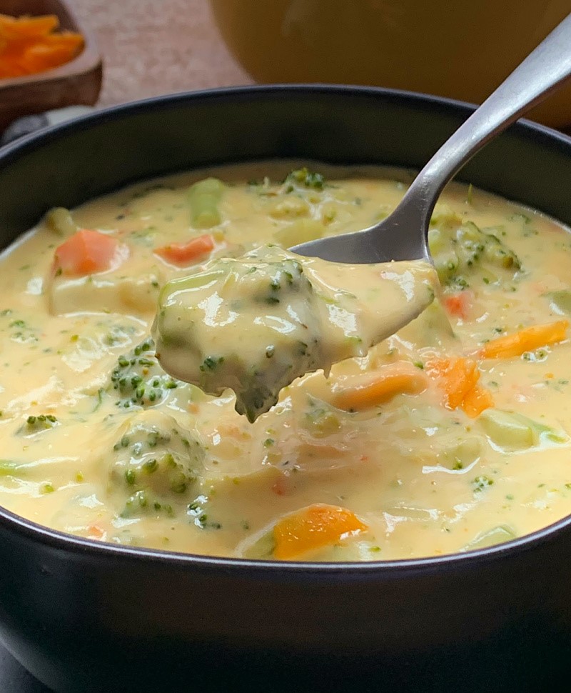 The soup was awesome instead of using the V8 I had leftover juice from a piece of meat I had cooked in the Crock-Pot.Tthe juice gave it a wonderful flavor. I didn’t have two tomatoes so I use two roma tomatoes. I used three types of shredded cheese instead of just the one type of cheese.The rest I kept it as the soup requested. I served with garlic bread.