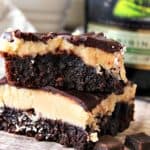 3-Layer fudgy brownies - easy recipe from your favorite box mix for a delicious boozy dessert.