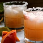 Run the juicy part of a lime wedge around the top rim of the glasses. Add coarse salt to a shallow bowl or plate then dip the rim of the glass into the salt until it’s coated with salt then set aside.
